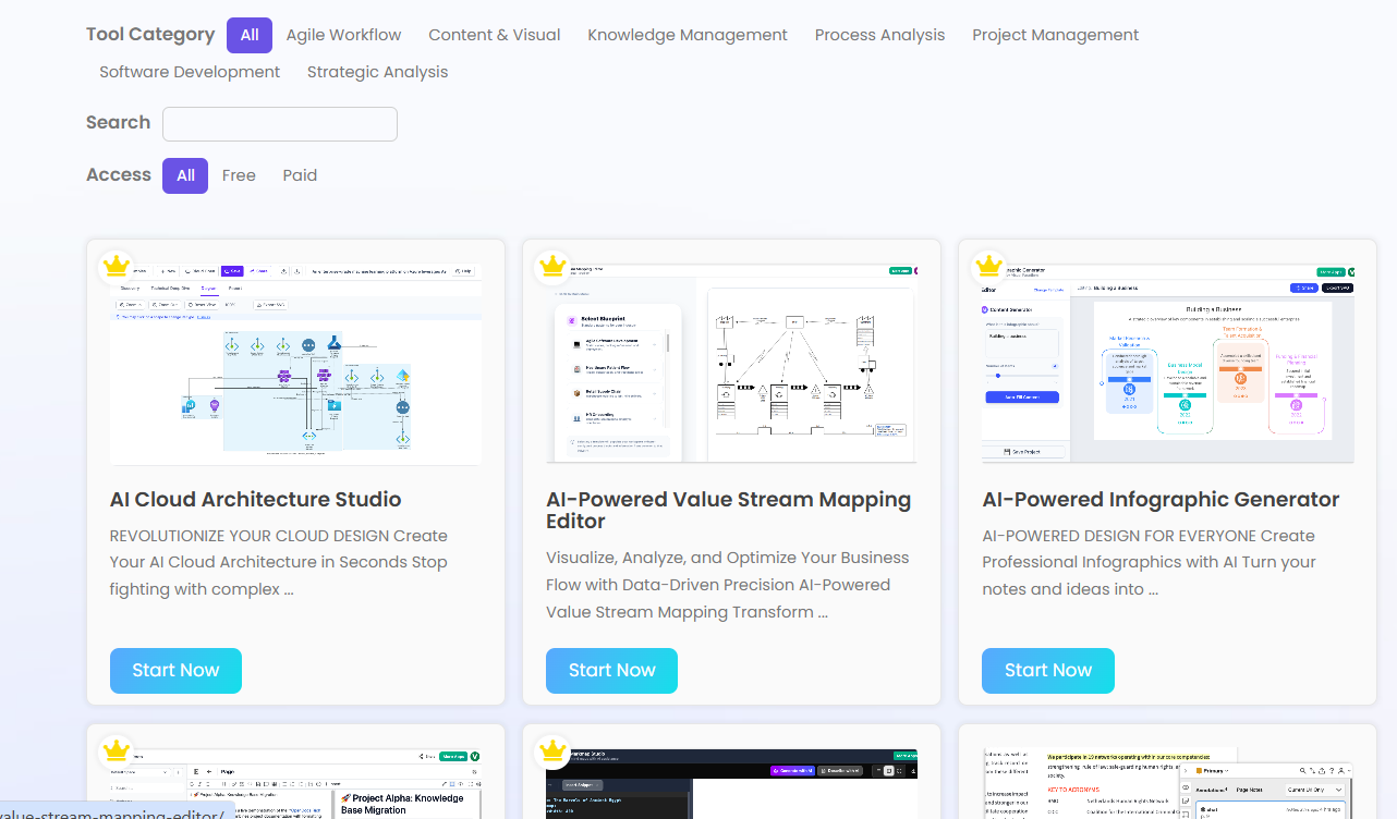 Web Apps (Guided Tools) → Step-by-step AI studios (e.g., Cloud Architecture Studio, Use Case Modeling Studio).